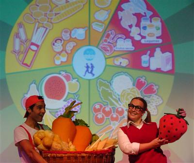 Como não poderia faltar, a roda dos alimentos será ilustrada, com frutas e legumes cenografados, e onde a importância de uma alimentação equilibrada e exercício físico será incutida nos mais novos como uma tarefa a levar para fazer em casa...
