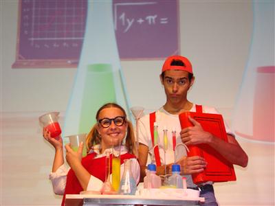Este espectáculo, conta a história de dois amigos que ao entrar na sala de aula, e ao mexer na mesa da professora de ciências, fazem asneira e são transportados para um mundo mágico, onde só com a ajuda dos meninos do público poderão passar as provas lançadas pelo Dr. Einstein.