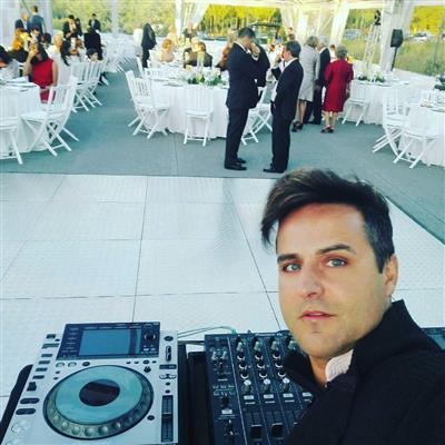 Aparelhagem de som JBL, mesa de mistura e leitores Pioneer.